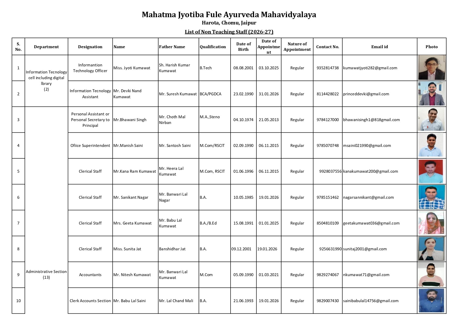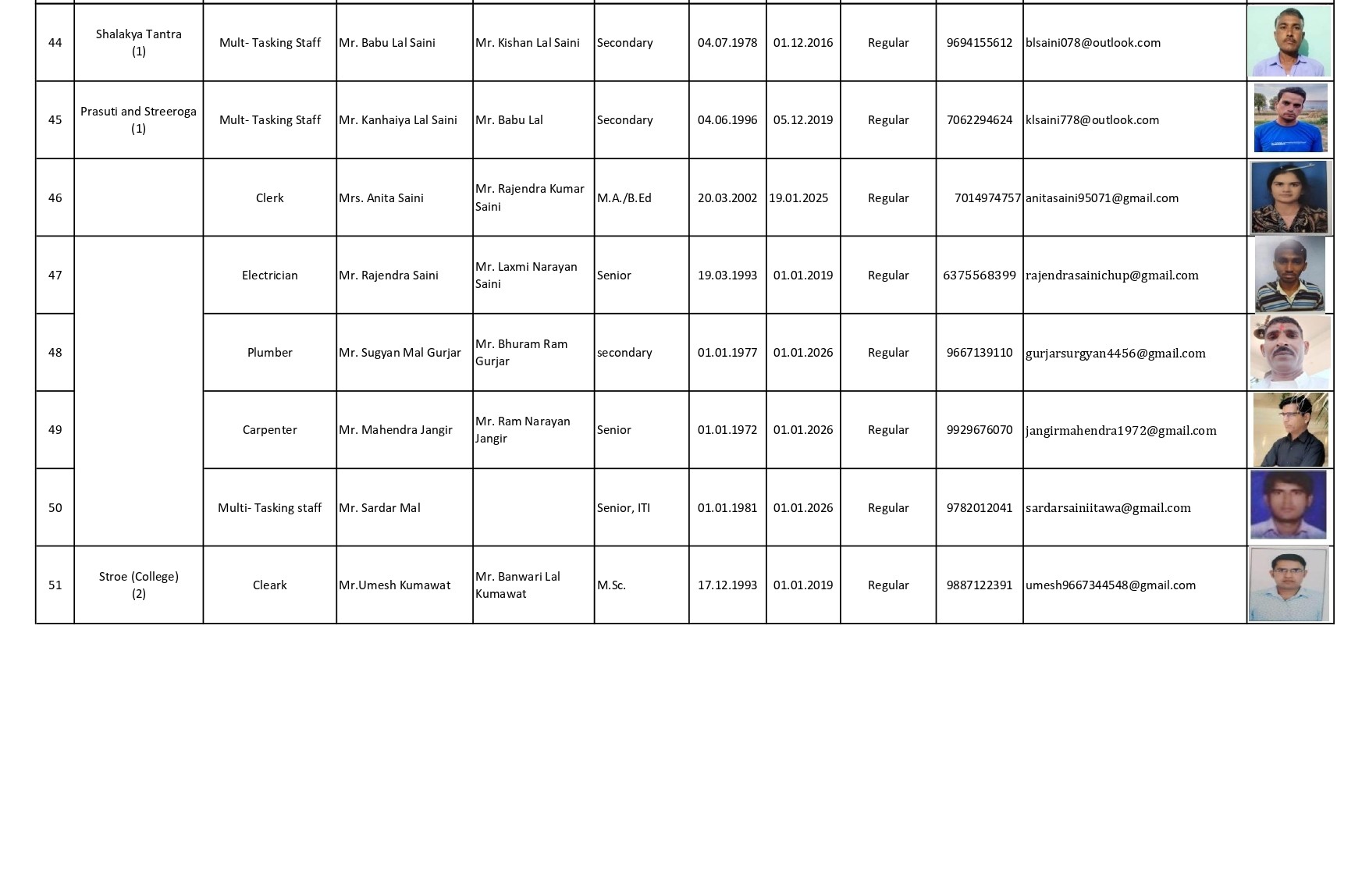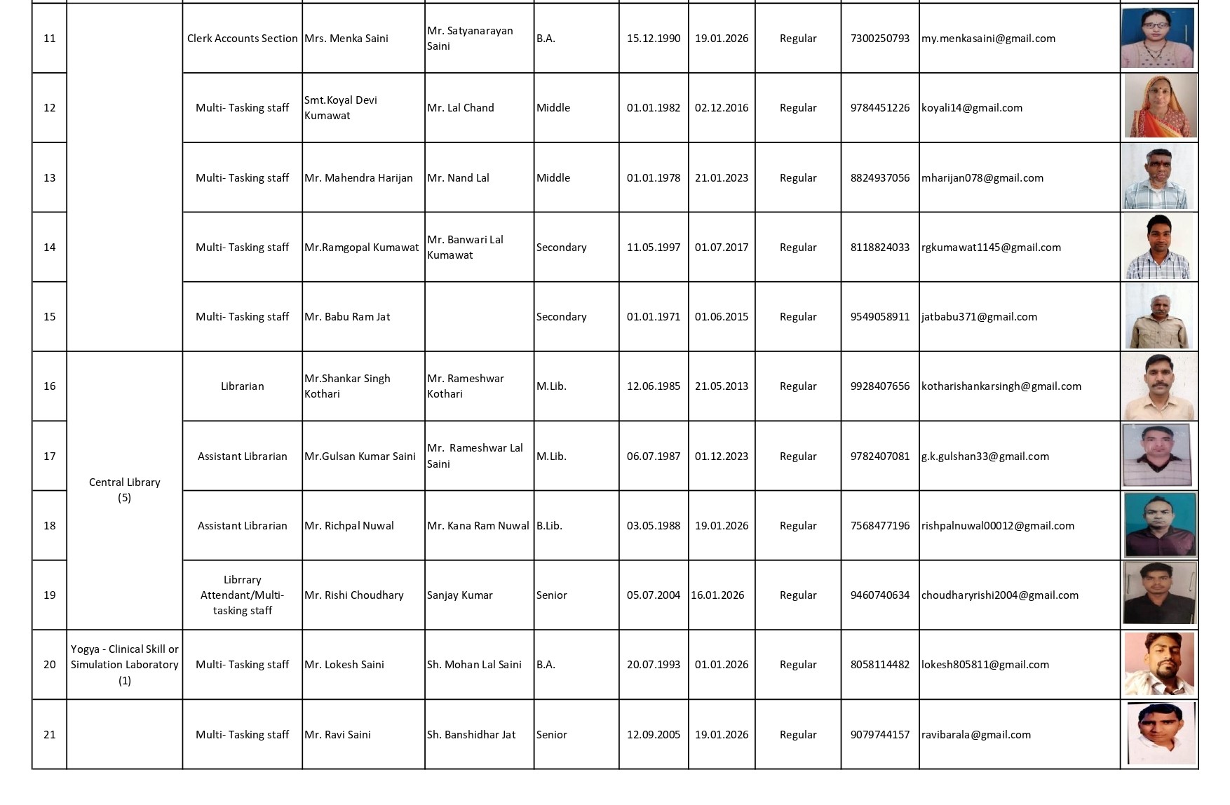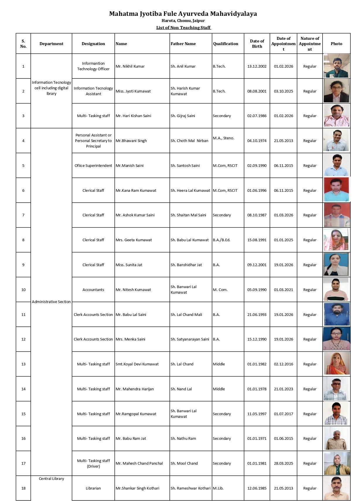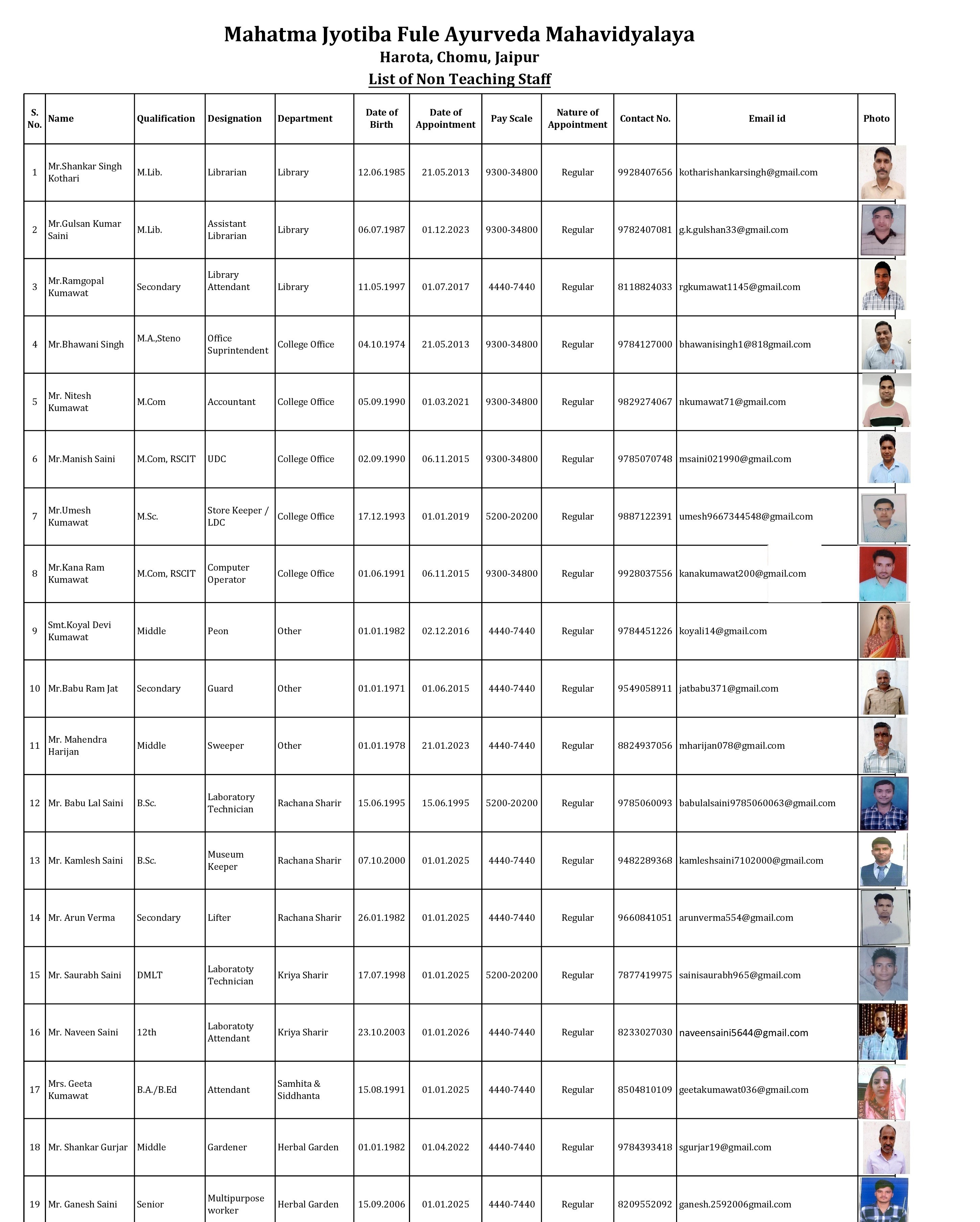 Non teaching Staff