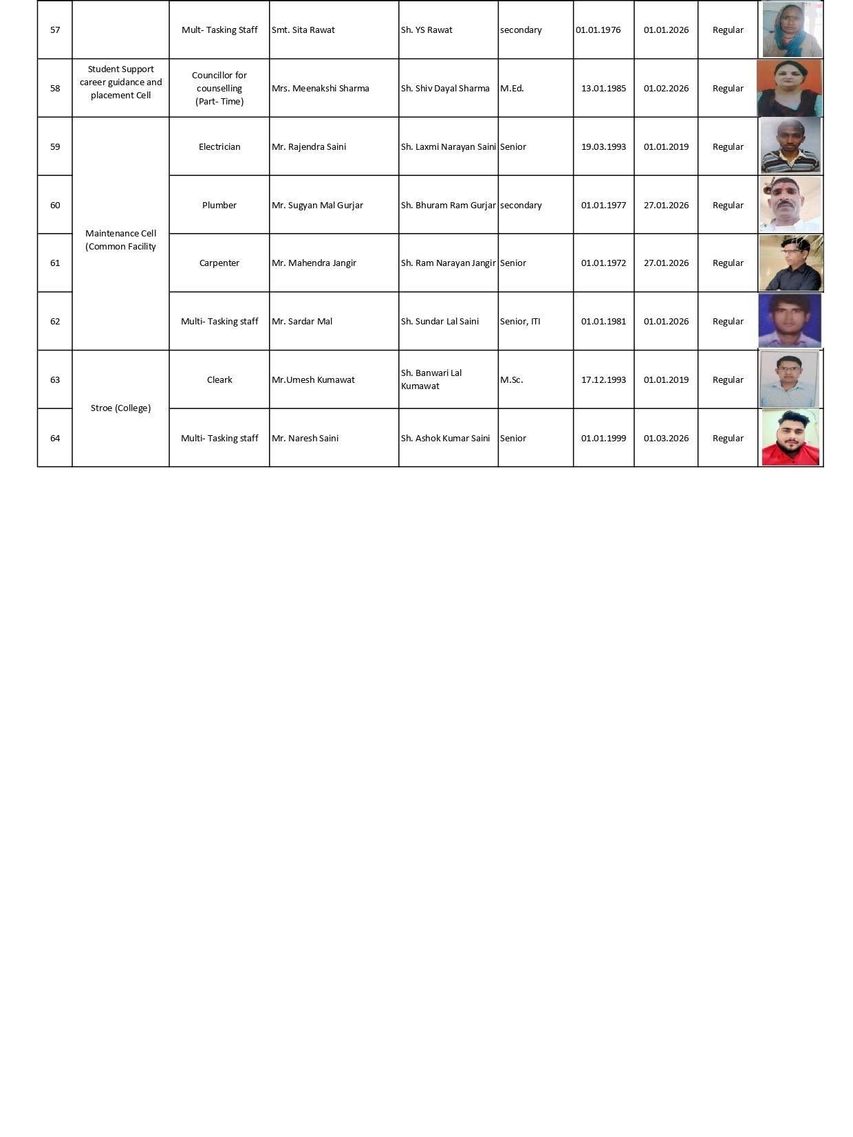 College Non-Teaching Staff